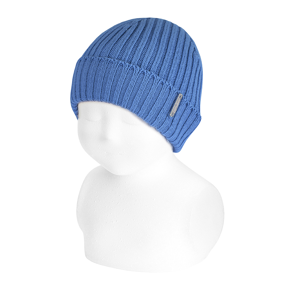 Gorra de canalé per a nadó de 0 a 24 mesos. A conjunt amb el jersei, culotte i pelele de canalé. 100% cotó.