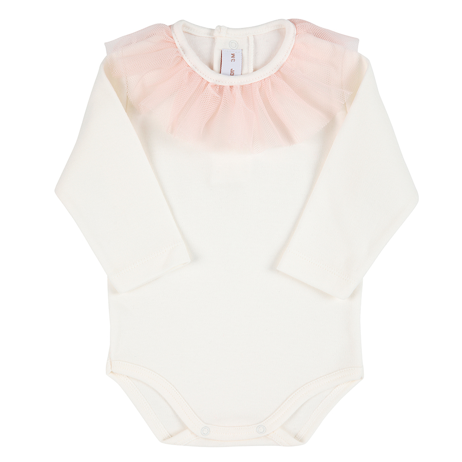 Body amb cor brodat al pit i coll amb tul arrufat.