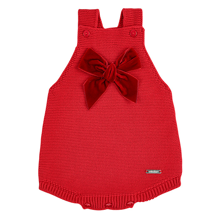 Granota de cotó amb punt malles girades i llaç de vellut.