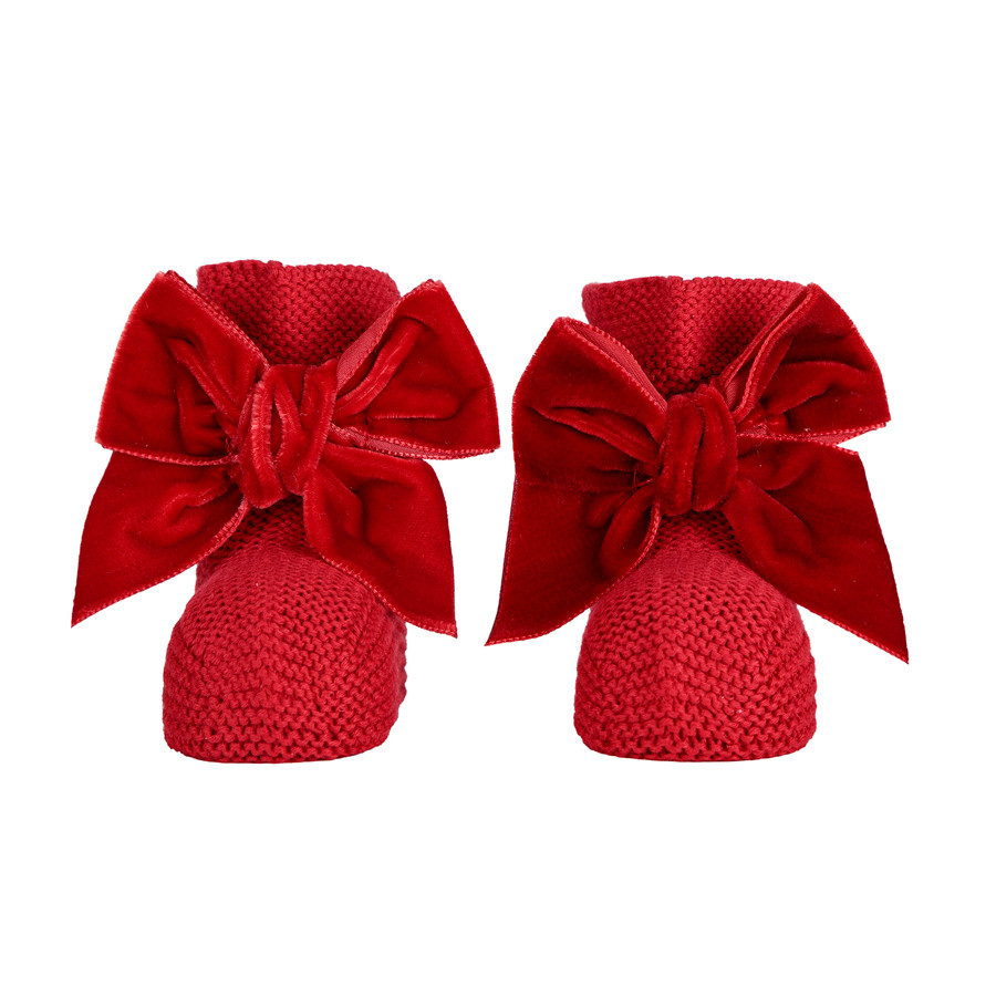 Peücs de nadó en punt babau amb detall de llaç de vellut a joc. Talla nounat.