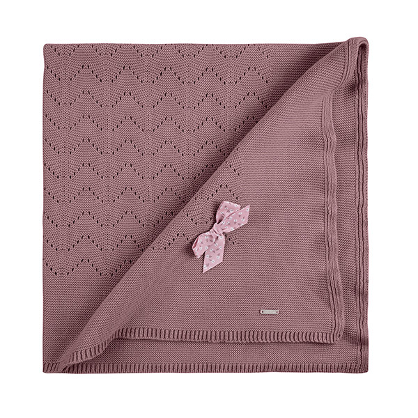 Toquilla per a nadó calada de punt 100% cotó de malles girades amb llaç de flors liberty