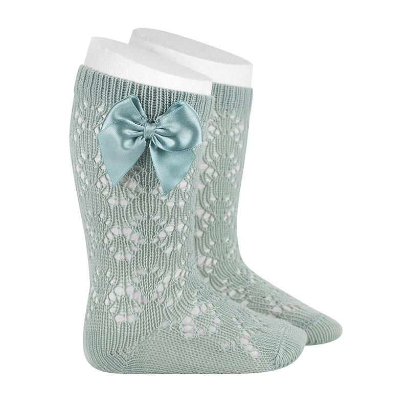 Mitjons alts de cotó perlé calat geomètric amb llaç a to al puny.