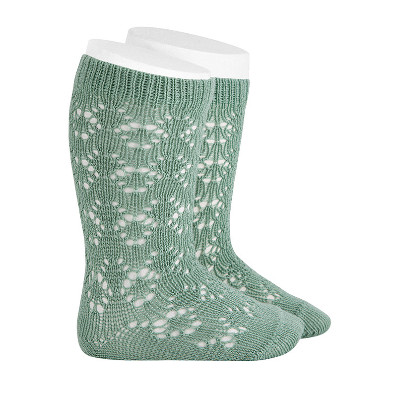 Mitjons alts de cotó perlé calat geomètric de primavera en una amplia gama de color i talles de 0-3 mesos a 8 anys.