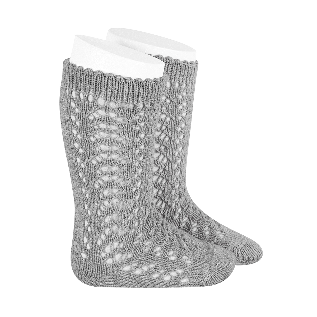 Mitjons alts de cotó perlé calat. 100% cotó. Disponibles en talles de 0-3 mesos a 14 anys (41-43).