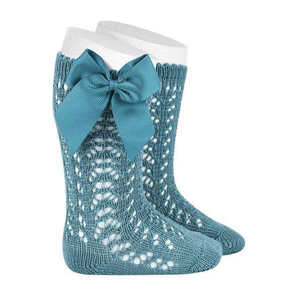 Mitjons alts calats 100% cotó perlé amb llaç al costat. Disponibles en talles de 0-3 mesos a 8 anys.