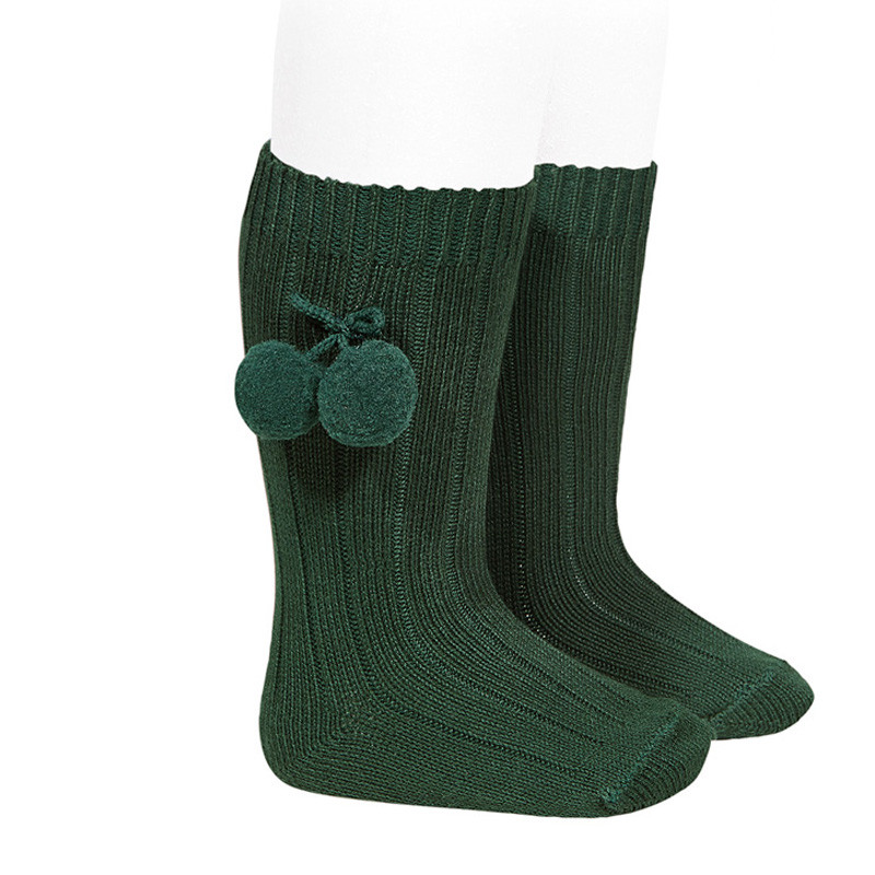 Mitjons alts de cotó càlid, llargs per sota del genoll i canalé amb borles a to. Disponibles en talles 000 (de 0-3 mesos) a 8 anys (32-35).