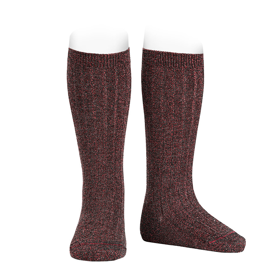 Mitjons alts per sota del genoll de viscosa amb lurex en canalé per a nadó, nena i dona.