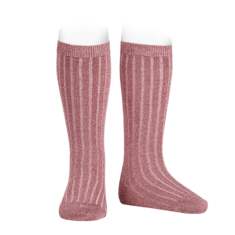 Lurex ribbed knee-high socks for baby, girl and woman.