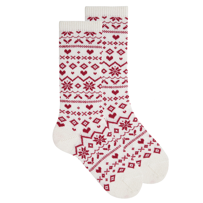 Knee-high socks in a merino wool blend with a two-tone winter trim. Children s sizes from 2 to 10 years.