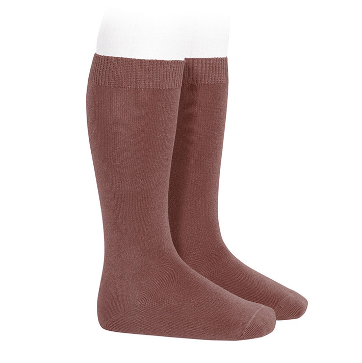 Plain stitch cotton basic knee-high socks. Available in more than 60 colours. Match it with our knitted cardigans and hair accessories.
