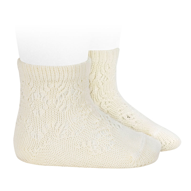 Perle short socks with openwork details in the cuff. Available in sizes 0-3 months to 6 years.
