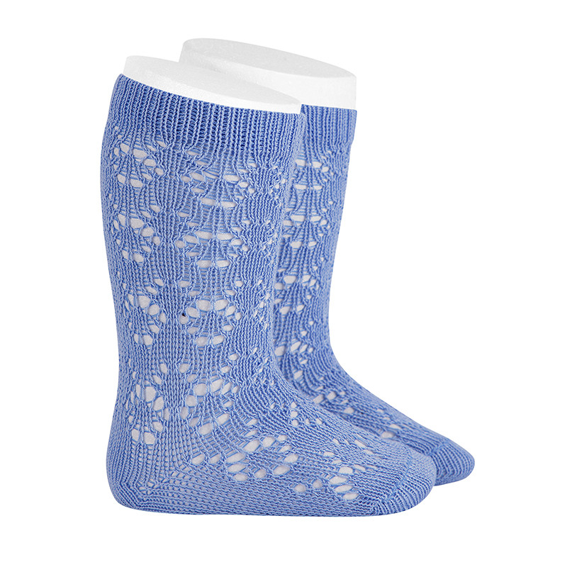 Perle cotton geometrical knee-high sokcs for spring in a wide range of colours and sizes from 0-3 months to 8 years.