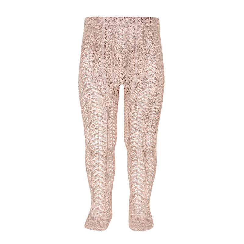 Perle cotton openwork tights for spring in a wide range of colours and sizes from 0-3 months to 8 years.