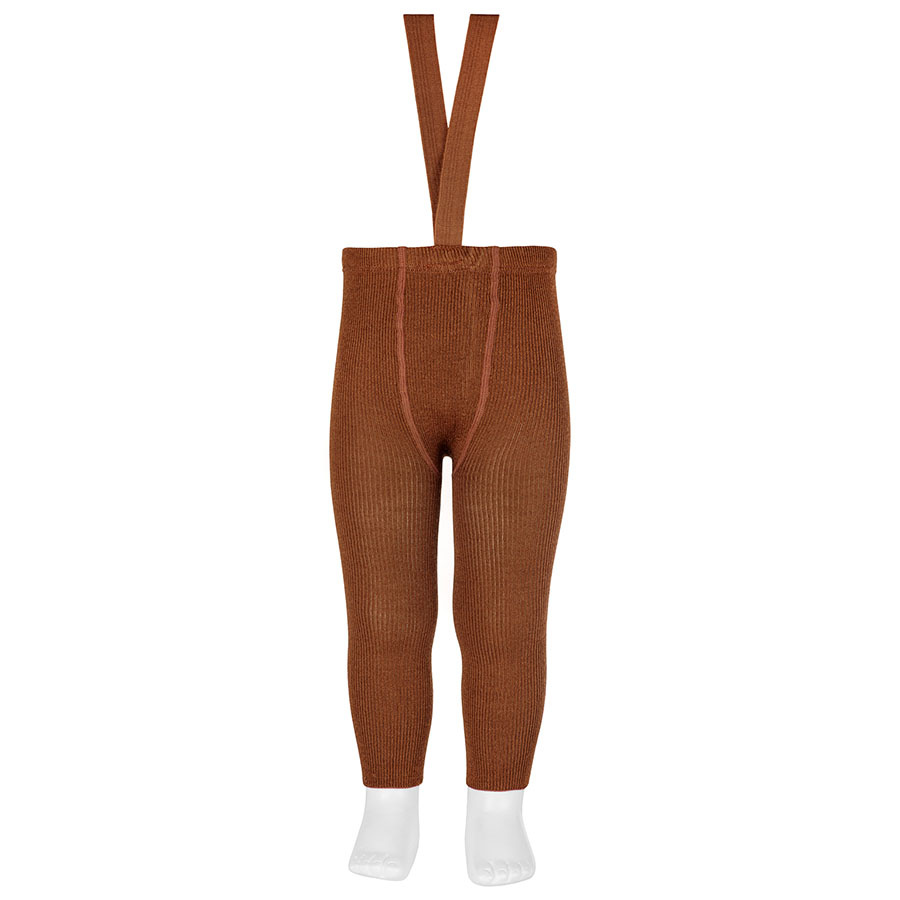 Footless leggings with elastic suspenders in wool and acrylic. Very warm. Sizes available from 3 months to 4 years.