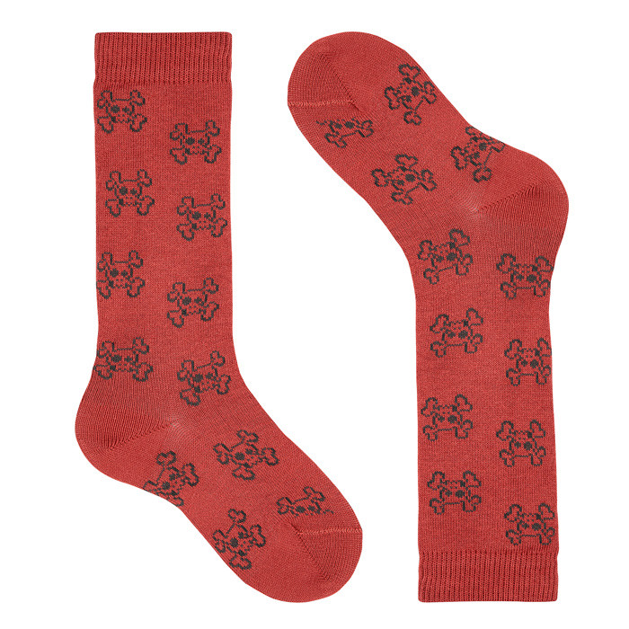 Skull fantasy knee-high cotton socks for kids in sizes 4 to 10 years.