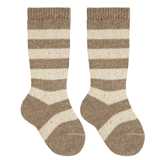 Wide striped tweed knee-high socks. Sizes from 0 to 4 years.