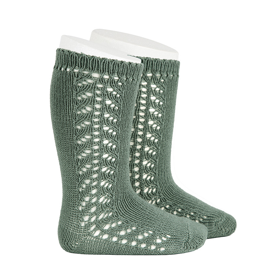 Calcetines altos de algodón cálido para bebé con detalle calado en el lateral.