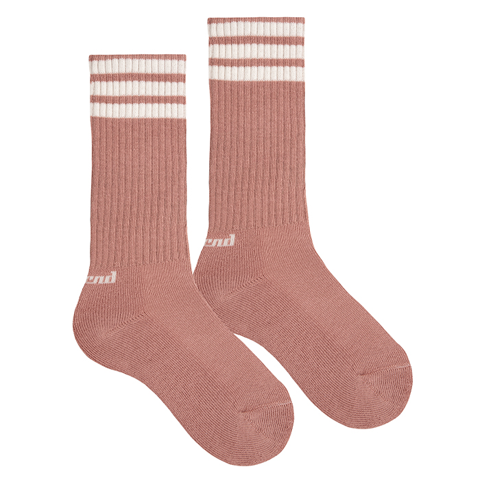Calcetines deportivos infantiles con tres rayas a contraste y rizo en la soleta.