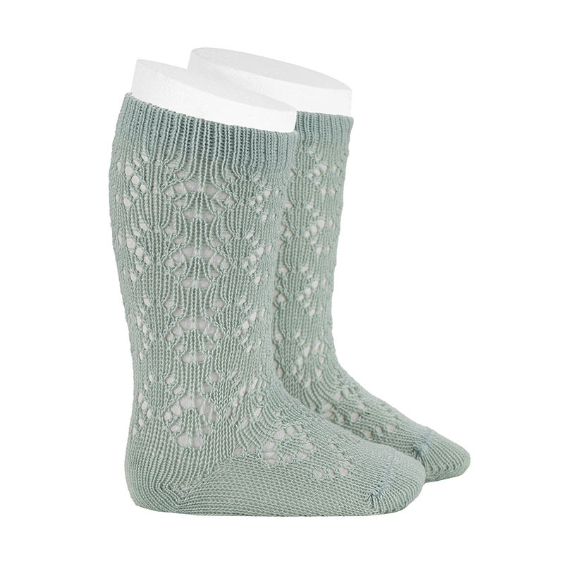 Calcetines altos de algodón perlé calado geométrico para primavera. Tallas de 0-3 meses a 8 años.