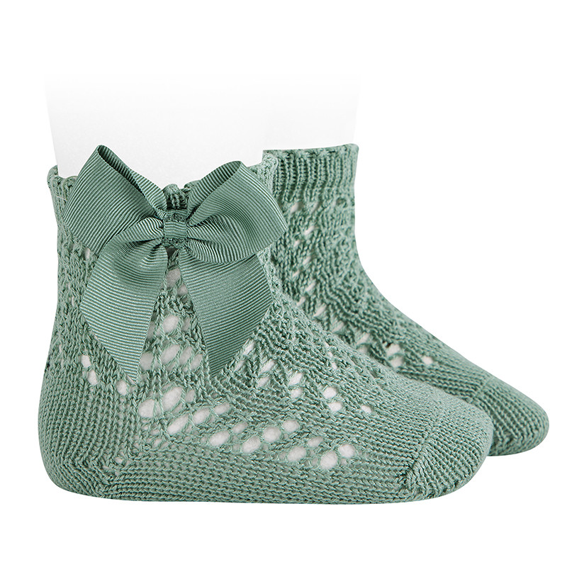Calcetines calados de algodón perlé con lazo gross-grain en el lateral.