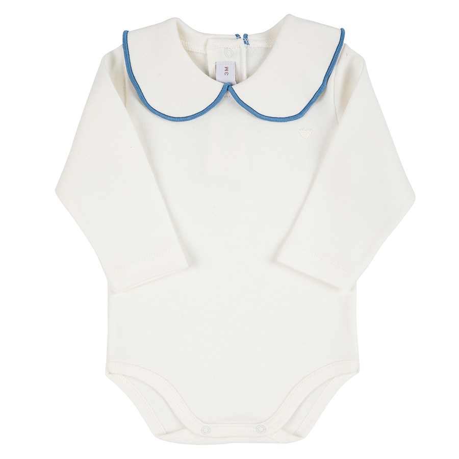 Body bordado corazón con cuello redondoy festón NATA-AZUL FRANCIA