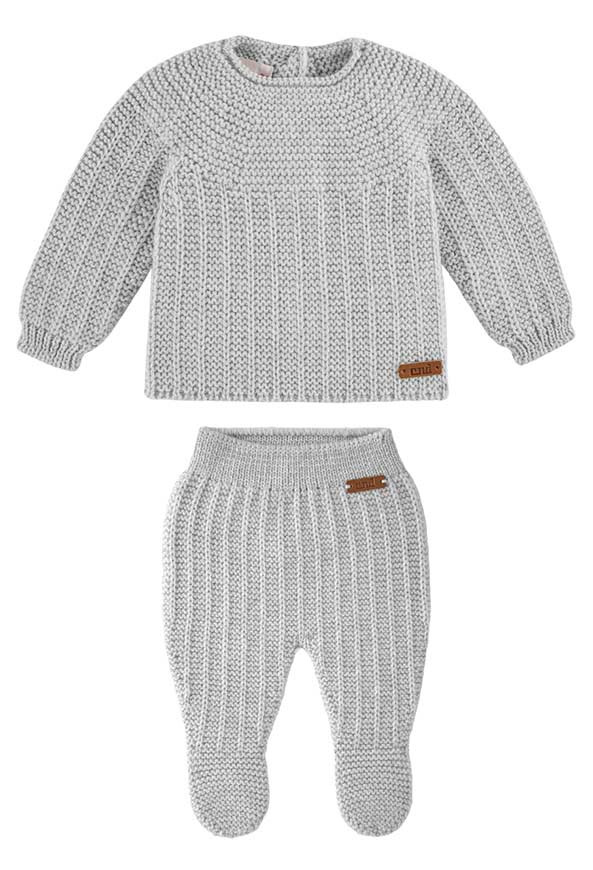 Conjunto de punto para bebé en mezcla lana merino. Conjunto de jersey y polaina.