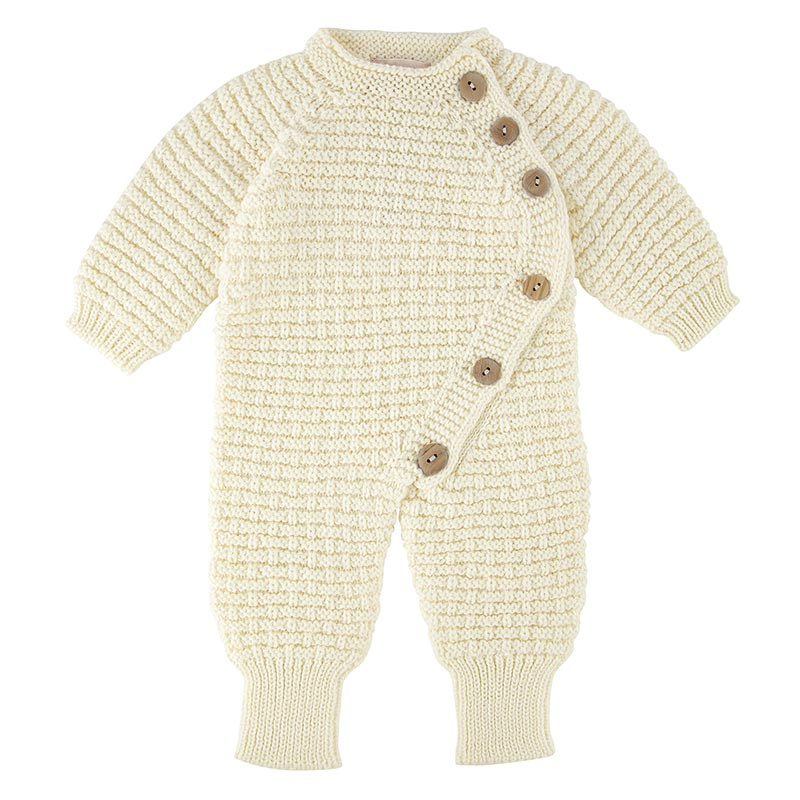 Pelele de punto en mezcla lana merino con textura punto grueso. Abrochado con botones.