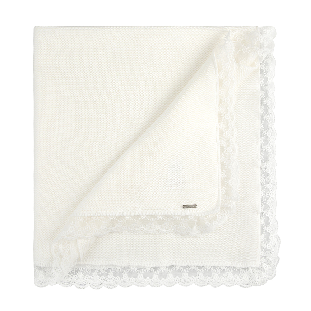 Toquilla en algodón en punto bobo con detalle de puntilla en bolillo.