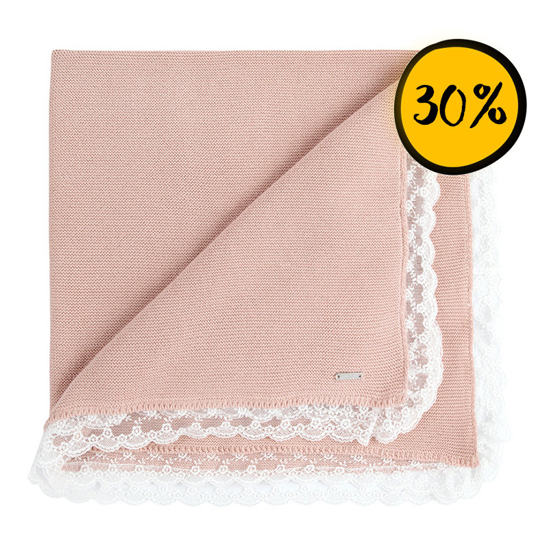 Toquilla para bebé 100% algodón en punto bobo con detalle de puntilla en bolillo.
