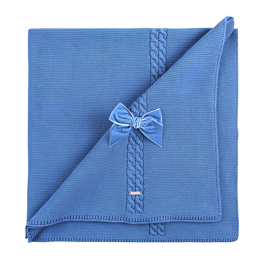 Toquilla punto bobo, trenza y lazo terciopelo AZUL FRANCIA