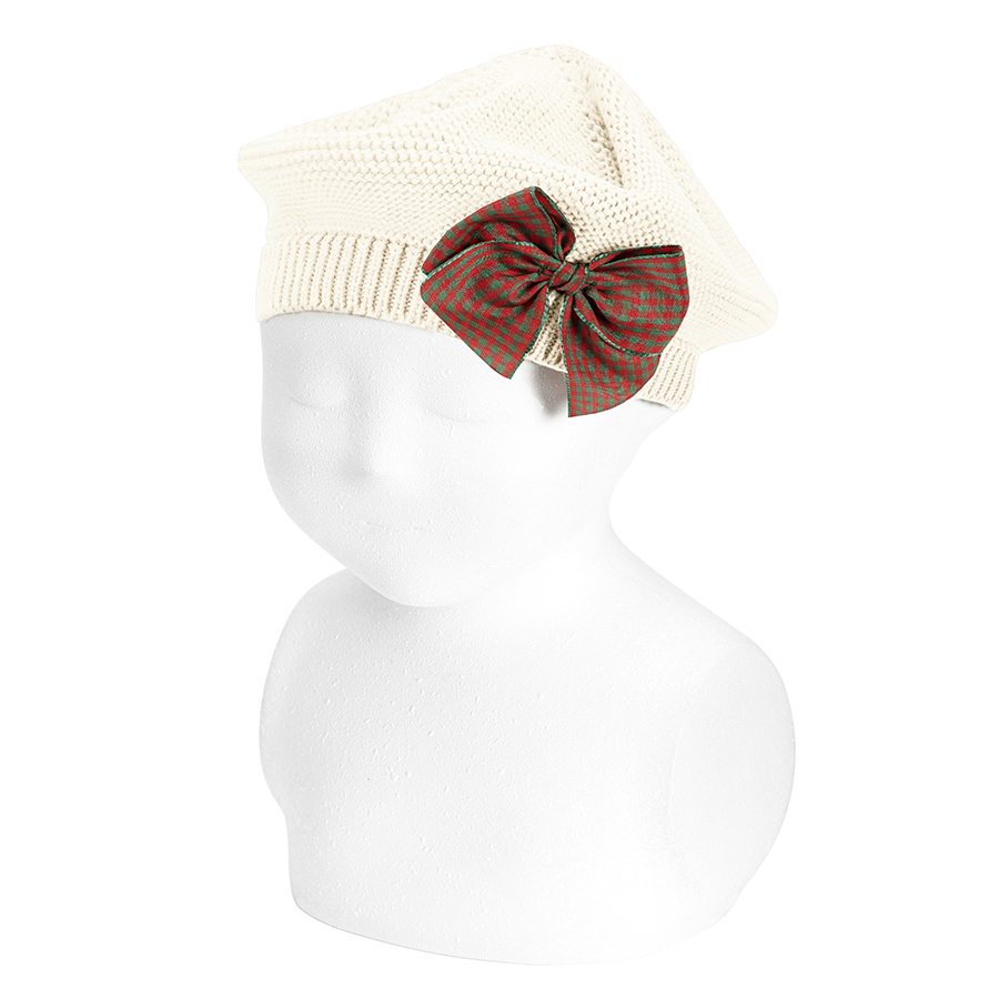 Boina de punto bobo 100% algodón para bebé con lazo vichy navidad.