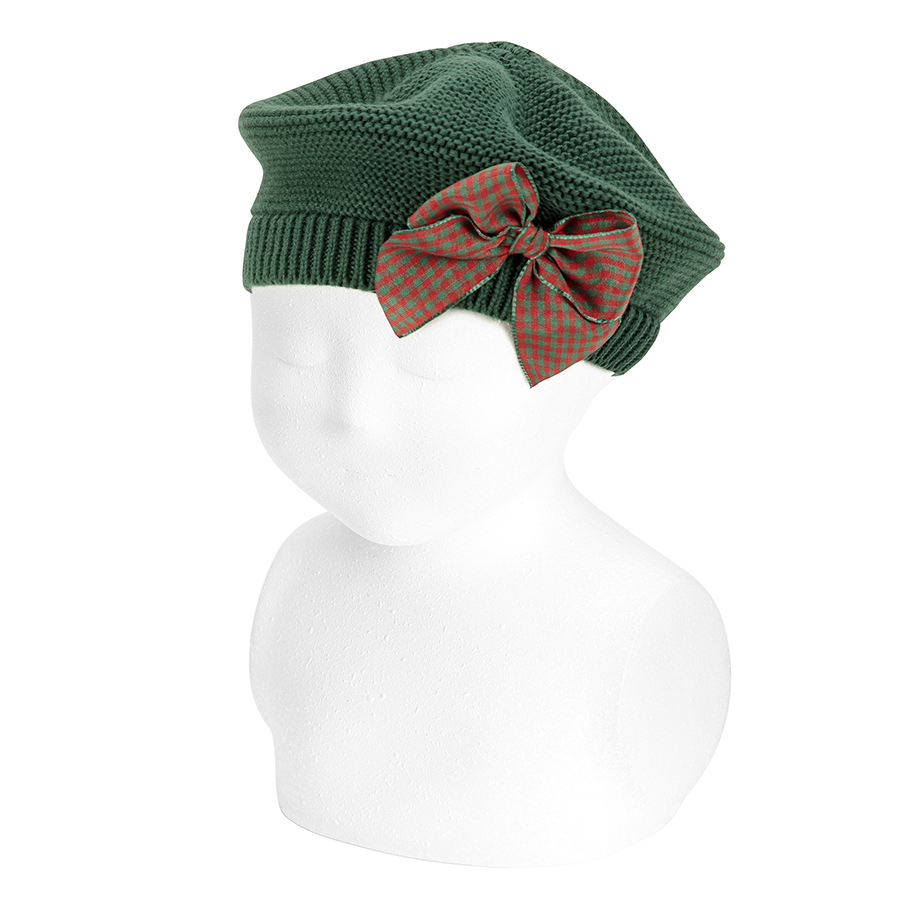 Boina de punto bobo 100% algodón para bebé con lazo vichy navidad.