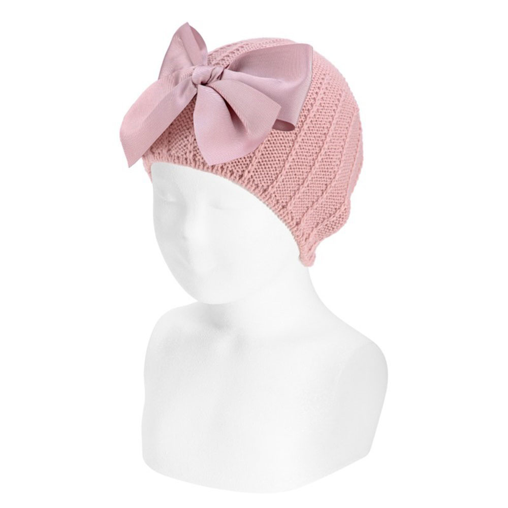 Gorro de punto bobo con lazo grande Faya a conjunto. Tallas disponibles de bebé a niña.