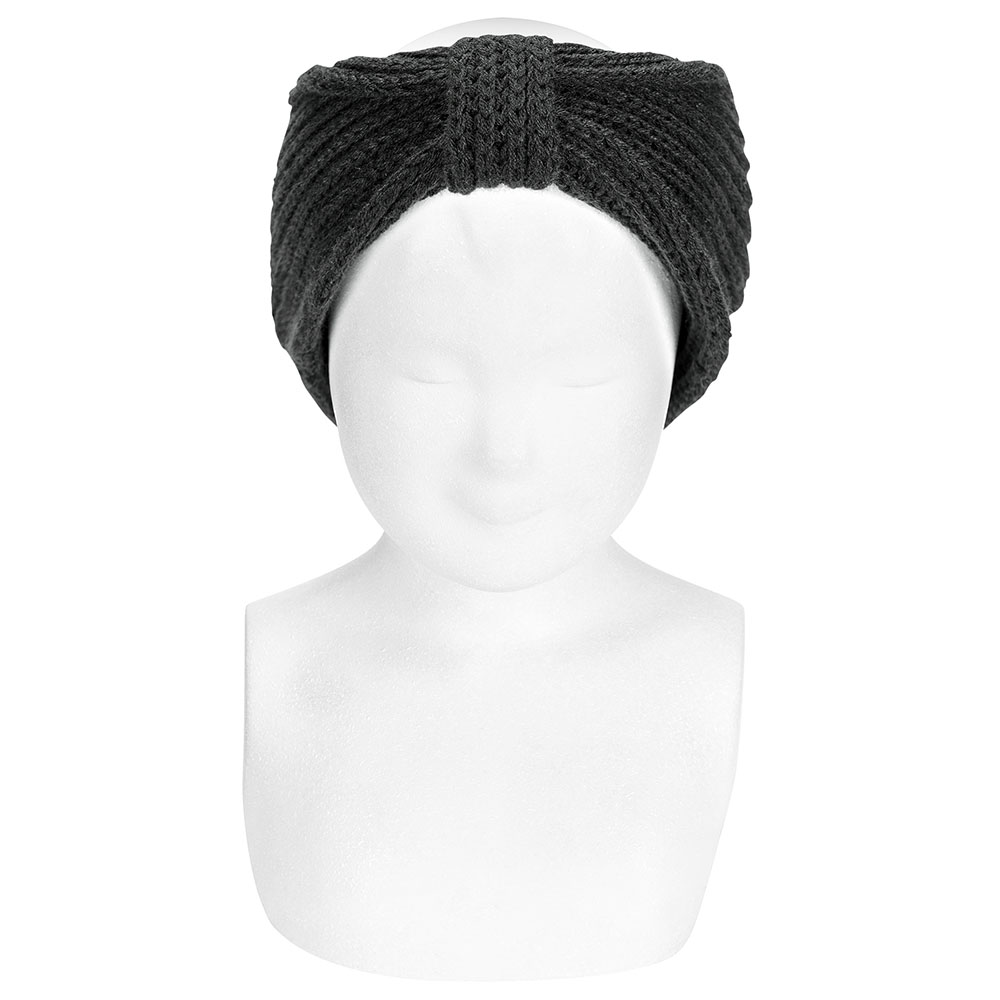 Turbante de punto con anudado en 100% acrílico. Talla S para bebé y talla L para niña. Disponible también con lazo.