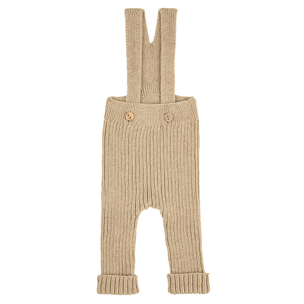 Pantalon pour bébé en tricot mélange laine mérinos côtelé avec bretelles.