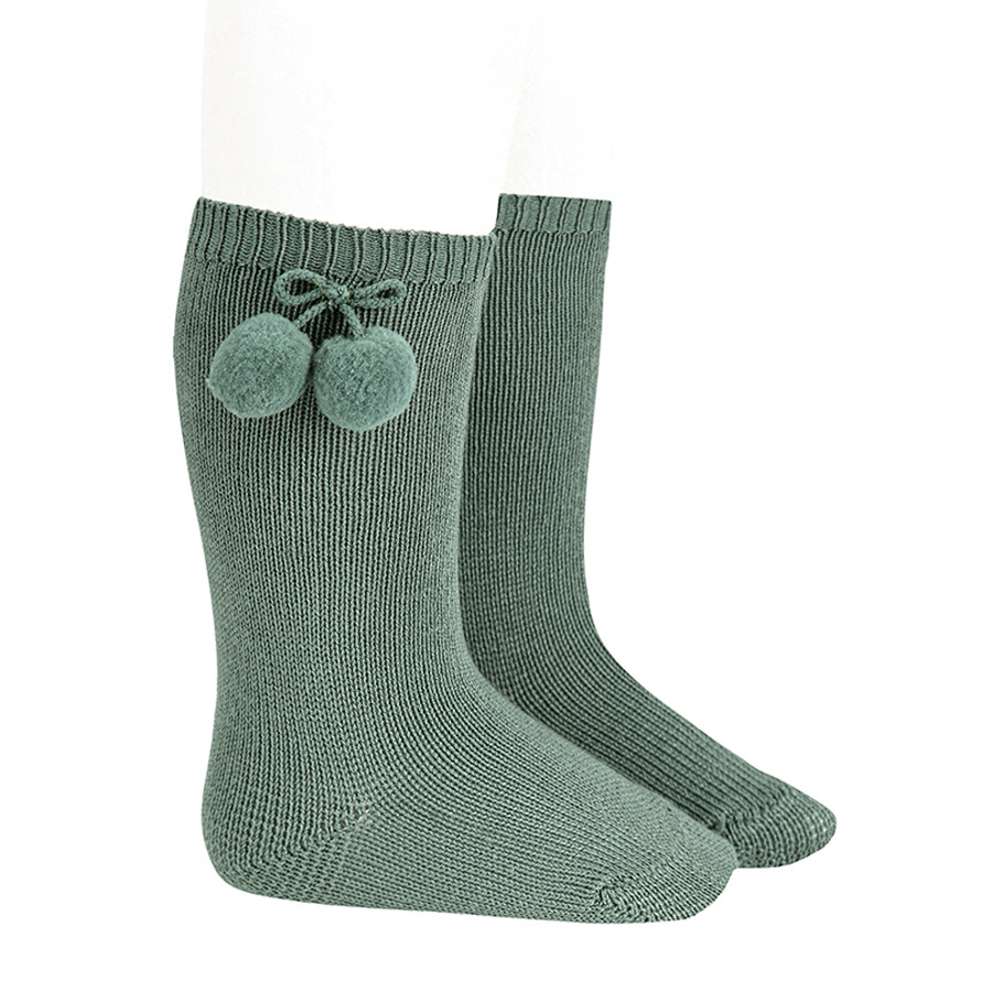 Chaussettes hautes en coton chaud avec pompons. Pour bébé de 0-3 mois à enfant 6 ans (27-31).