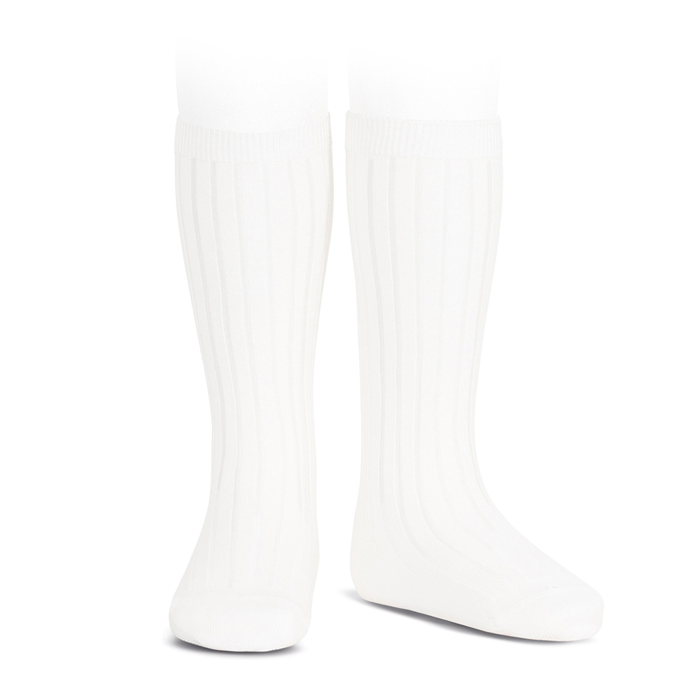 Chaussettes hautes basiques côtelées en coton. Disponibles en plus de 60 couleurs. Assortez les avec nos cardigans en tricot et accessoires pour les cheveux dans la meme couleur.