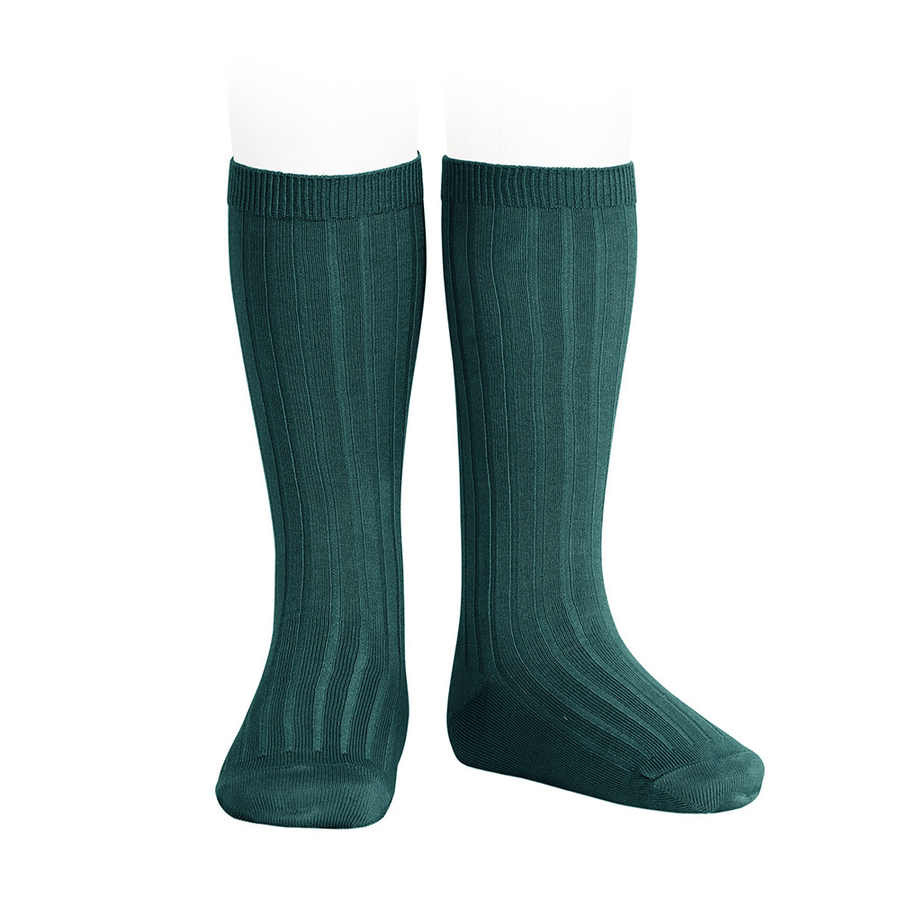 Chaussettes hautes basiques côtelées en coton. Disponibles en plus de 60 couleurs. Assortez les avec nos cardigans en tricot et accessoires pour les cheveux dans la meme couleur.
