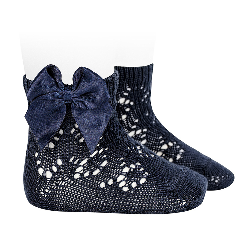Chaussettes courtes en coton perle ajourée avec noeud.