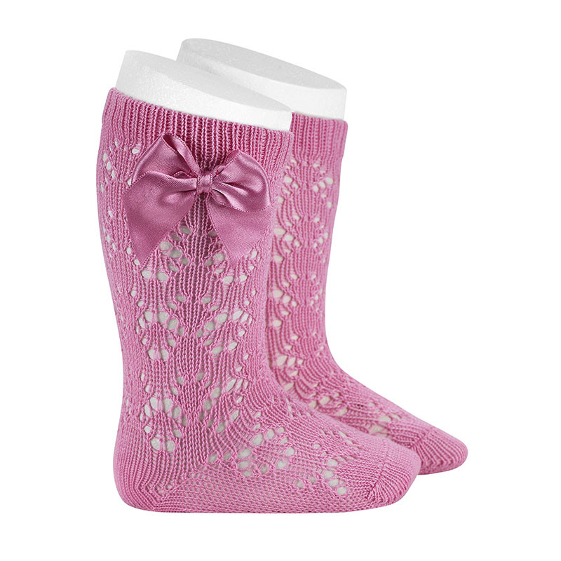 Chaussettes hautes en coton perlé avec ajouré géomètrique et nœud.