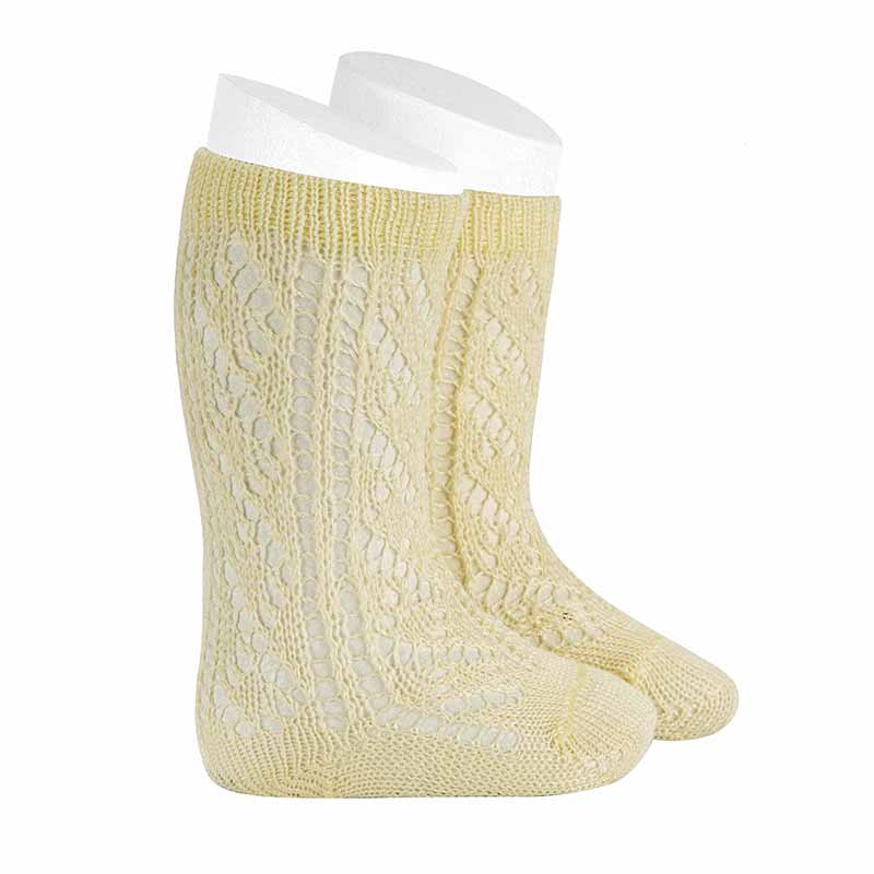 Chaussettes hautes ajourées en coton perle extrafin printemps pour bébé de 0-3 mois à 4 ans.