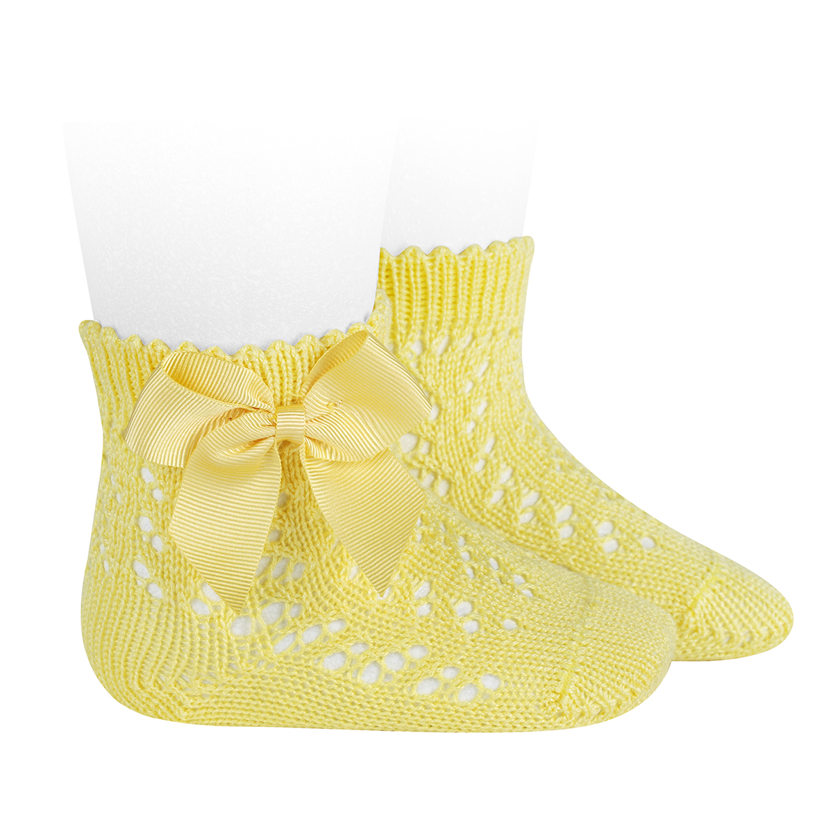 Chaussettes courtes en coton perle ajourée avec noeud.