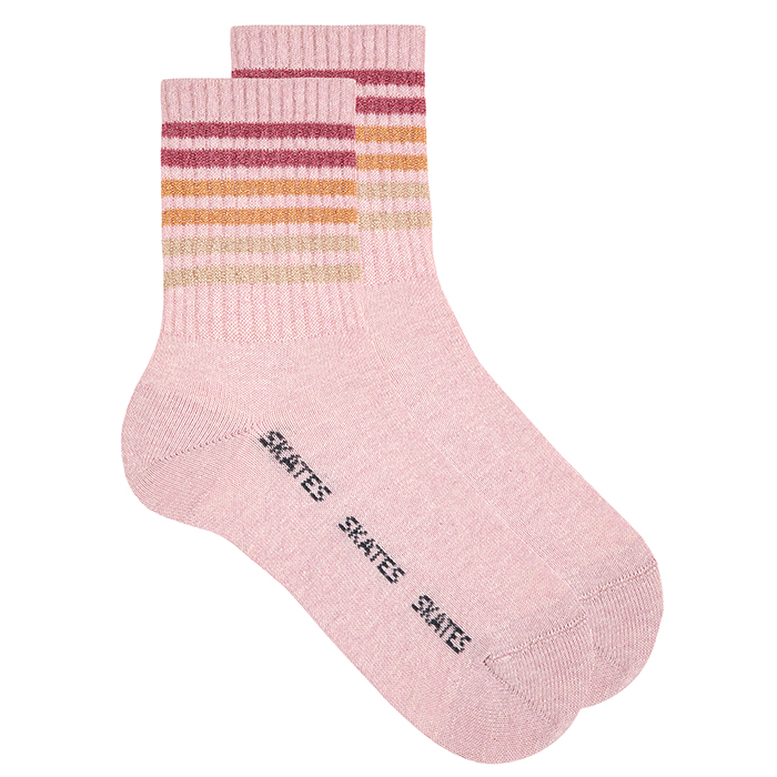 Chaussettes courtes tennis en coton recyclé avec rayures en fil brillant.