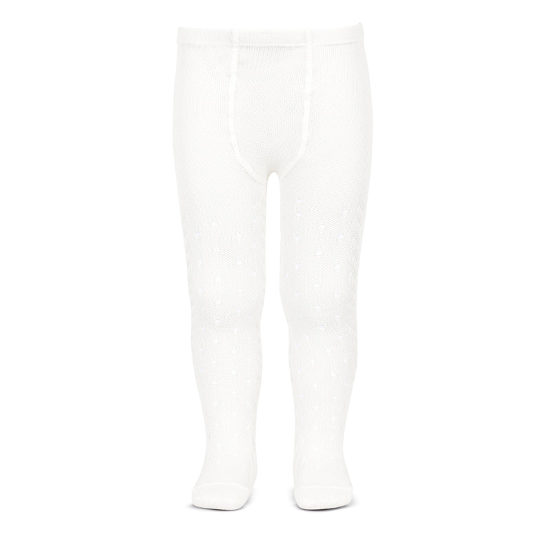 Chaussettes hautes 100% coton perle ajourées avec noeud. Disponibles en tailles pour bébé de 0-3 mois à enfant 8 ans.