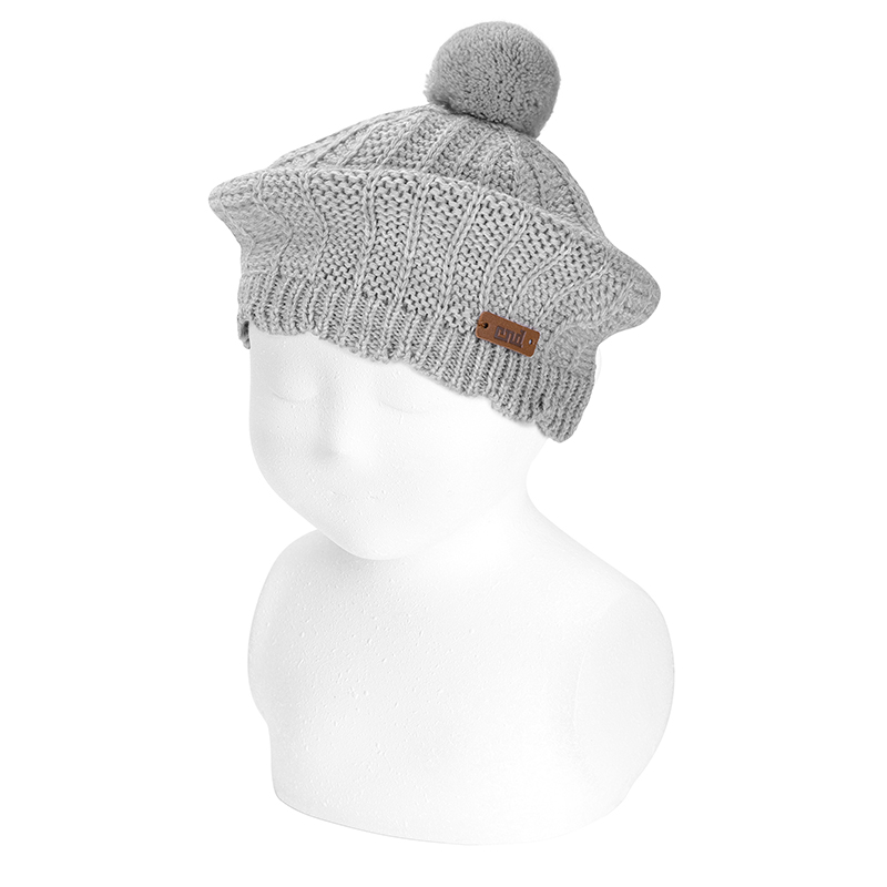 Béret en laine mérino mélangé en point link et pompon