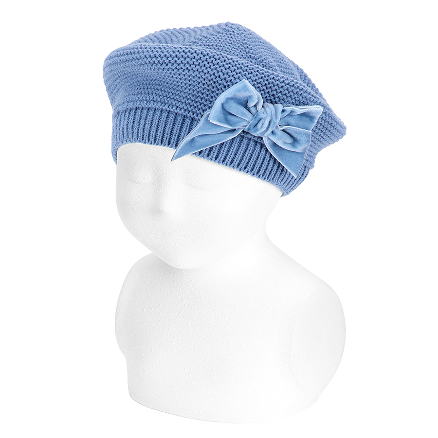Bonnet en cotton point mousse et noeud en velours. Assortez-les avec les chaussettes et collants avec noeud en velours.