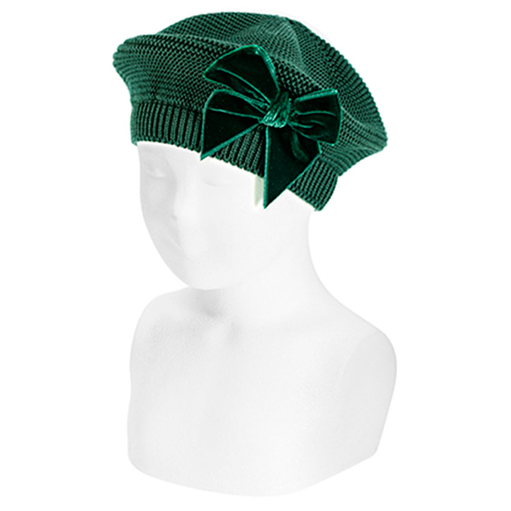 Bonnet en cotton point mousse et noeud en velours. Assortez-les avec les chaussettes et collants avec noeud en velours.