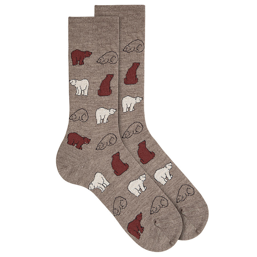 Chaussettes pour hommes en mélange de laine mérinos avec motifs d ours.