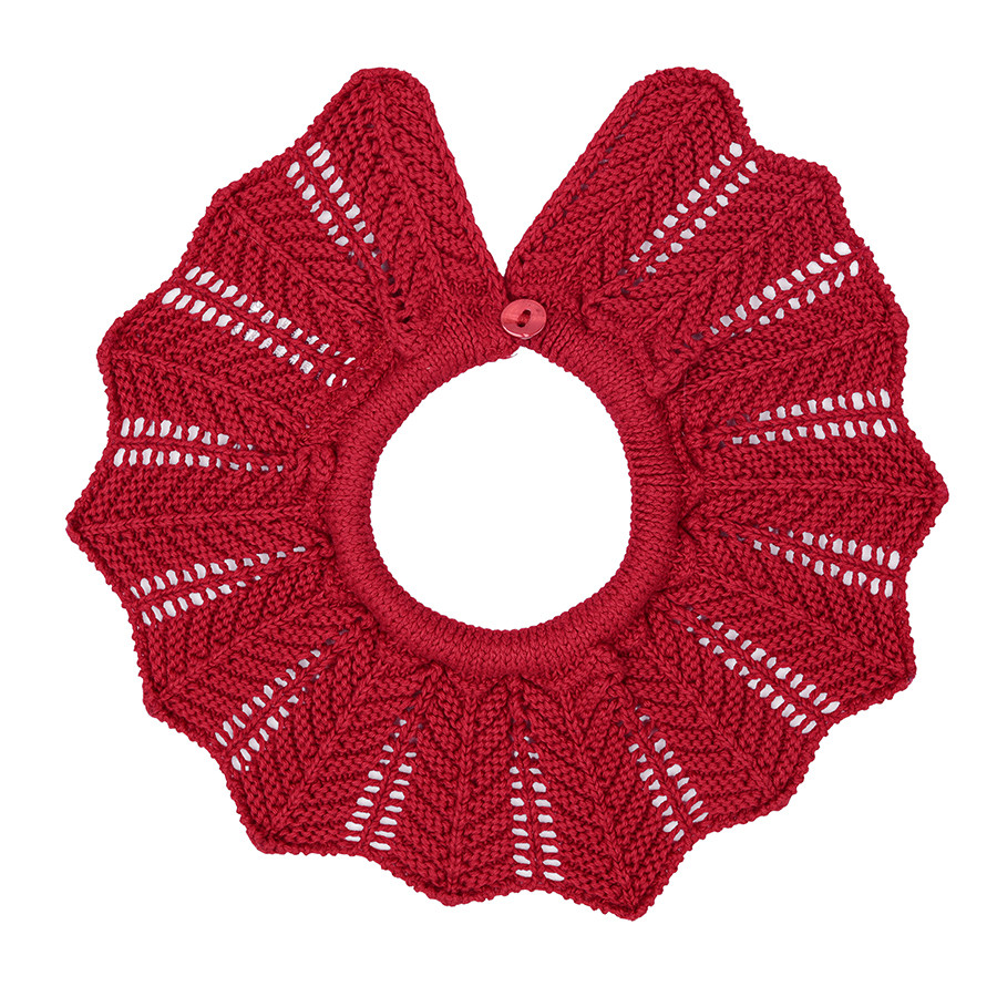 Colletto in maglia traforata per neonato. Chiusura con bottone in legno.