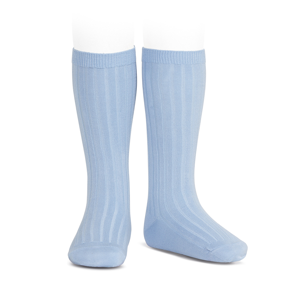Calze lunghe basic a coste BLU CHIARO